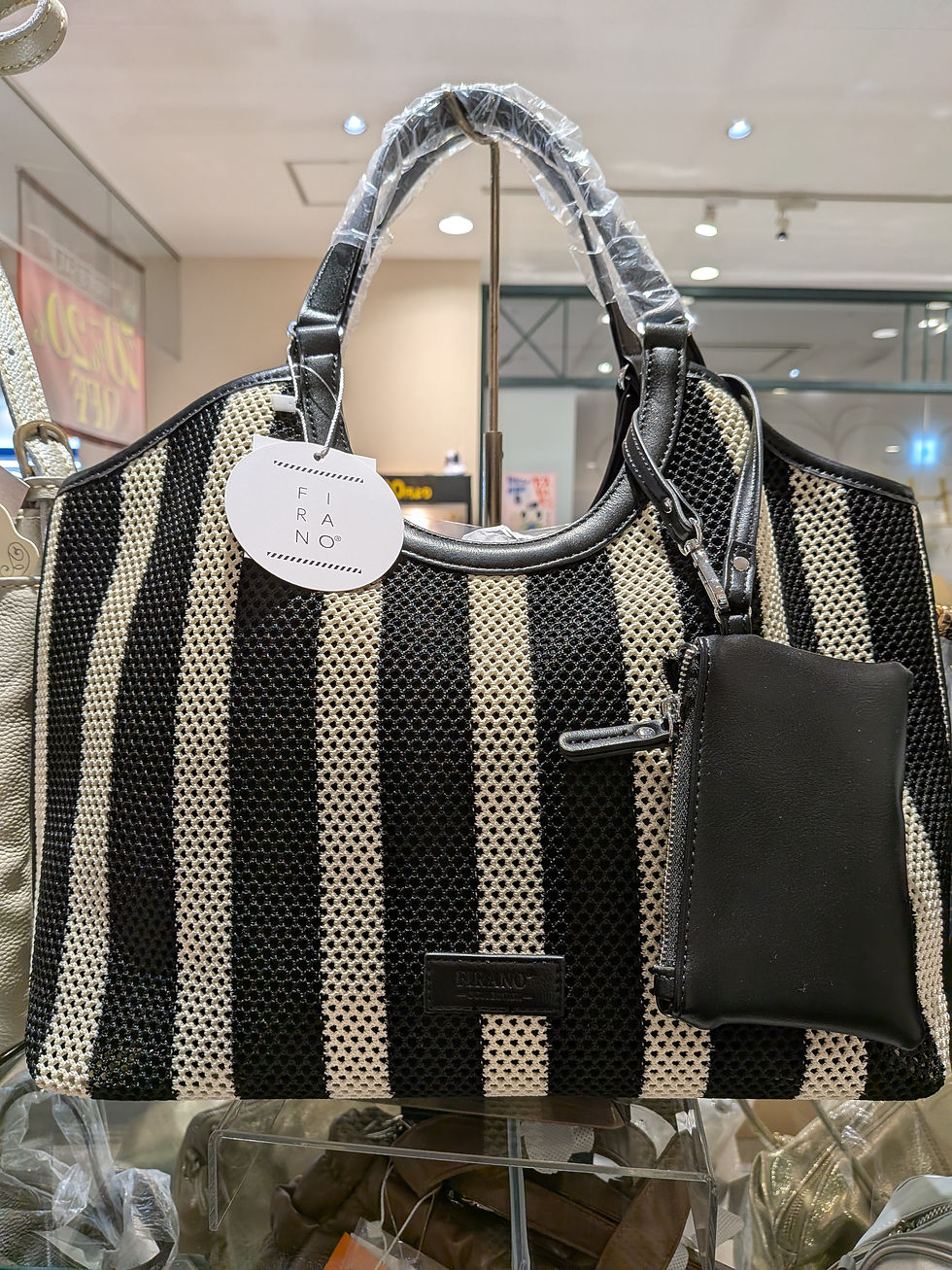 店頭には、コーディネートのポイントになる鮮やかなオレンジのトートバッグや、装いを上品にまとめてくれるホワイトのトートバッグなど、春らしい色合いのアイテムが並んでいます。いずれも表面に凹凸感のある素材を使用したデザインで、カジュアルにもきれいめスタイルにも合わせやすく、普段使いしやすいサイズ感です。肩掛け・手持ちのどちらにも対応し、毎日の外出で活躍してくれることが期待できます。